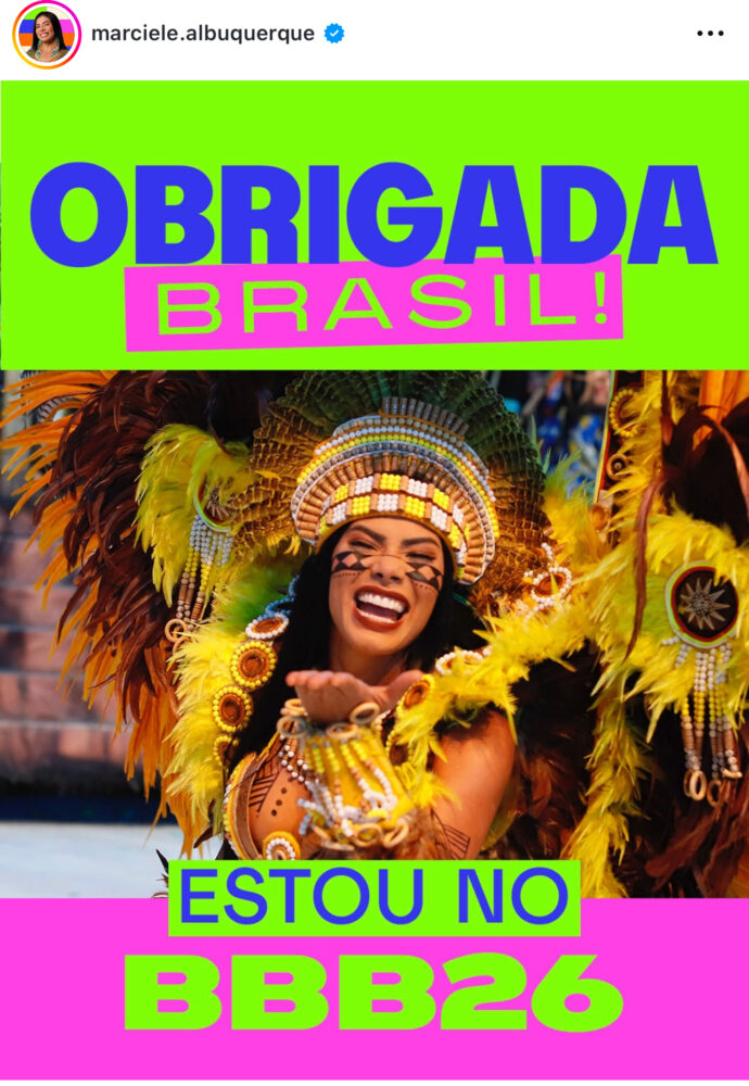 Nas redes sociais, Marciele agradeceu o apoio do público e celebrou a conquista ainda durante sua passagem pela Casa de Vidro, etapa que antecedeu a confirmação oficial no reality. Em publicação emocionada, ela afirmou que a vitória não é apenas individual, mas fruto do apoio de todos que acreditaram em seu sonho e na força da cultura amazônica.